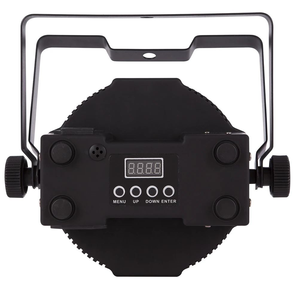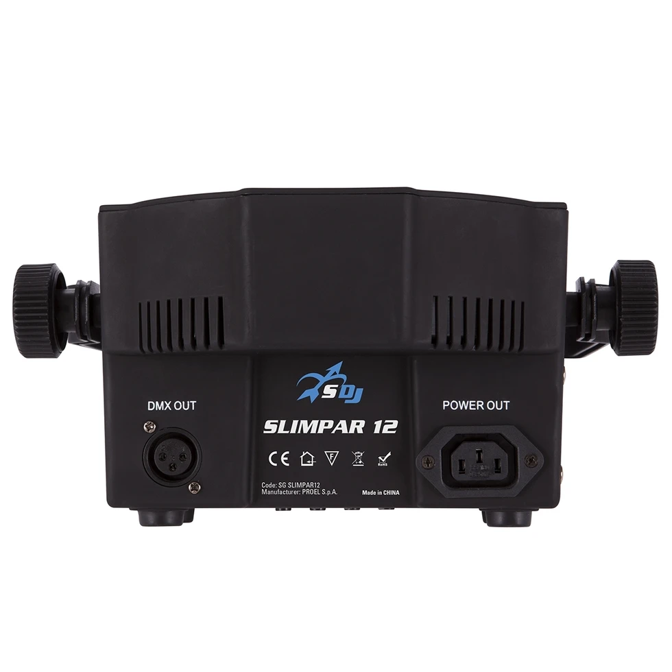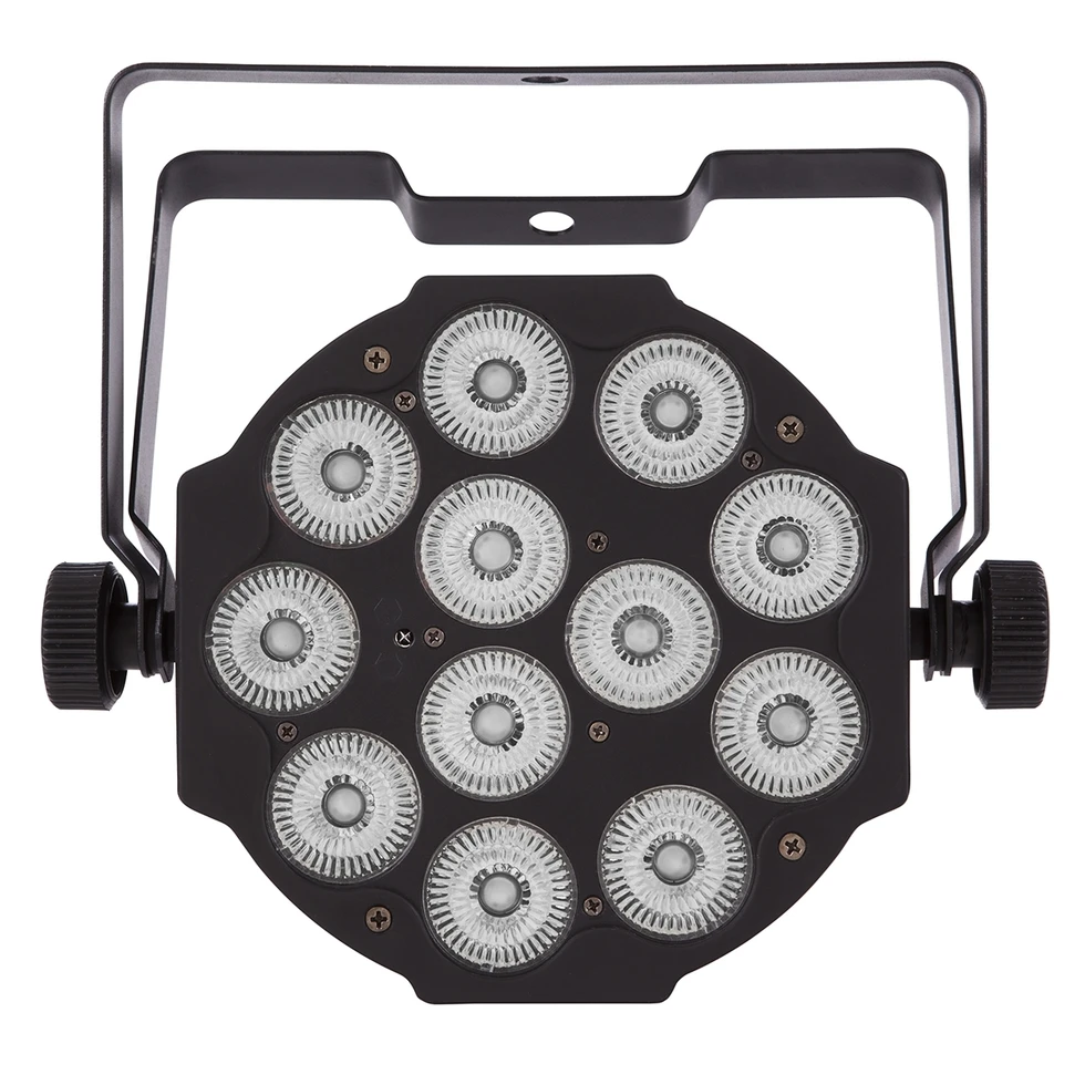 Заливающий прожектор 12 x 8 Вт RGBW LED, 1060 лк / 5 м, угол луча 25°, стробоскоп до 20 вспышек/с, 1/4/5/8 DMX-каналов, ИК-пульт.