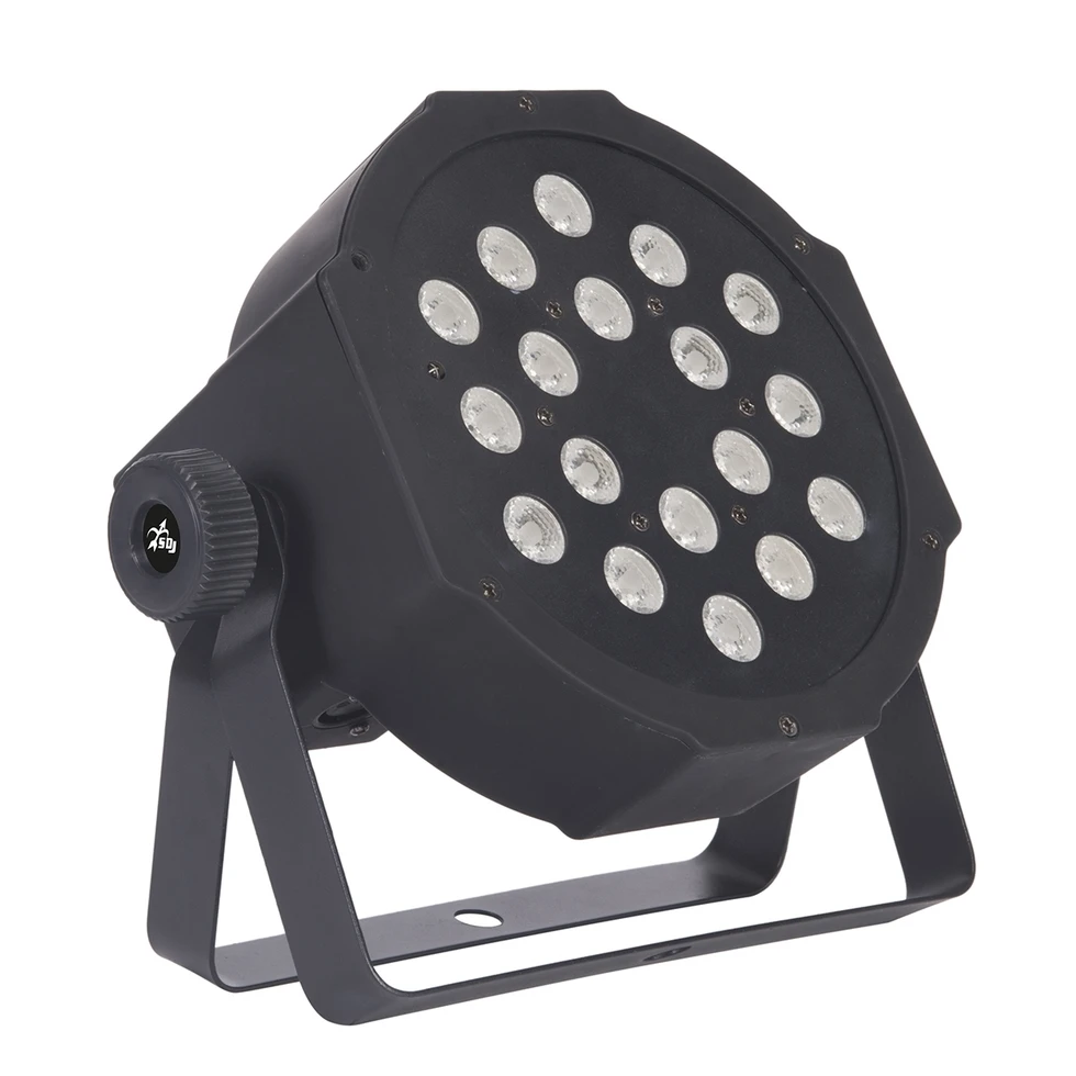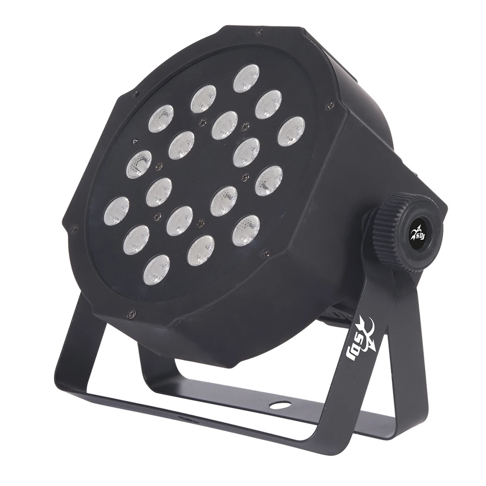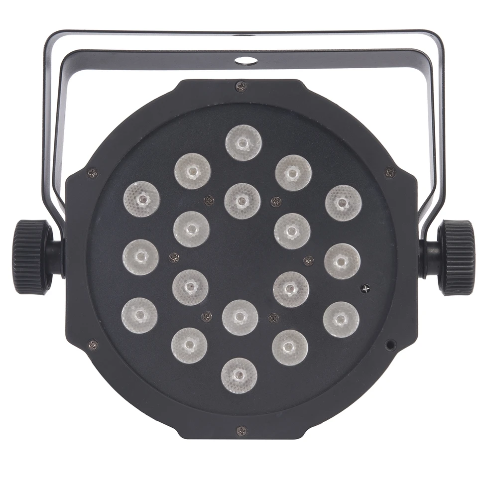 Заливающий прожектор 18 x 1 Вт RGB LED, угол луча 25°, управляемый стробоскоп, 6 DMX-каналов, ИК-пульт.