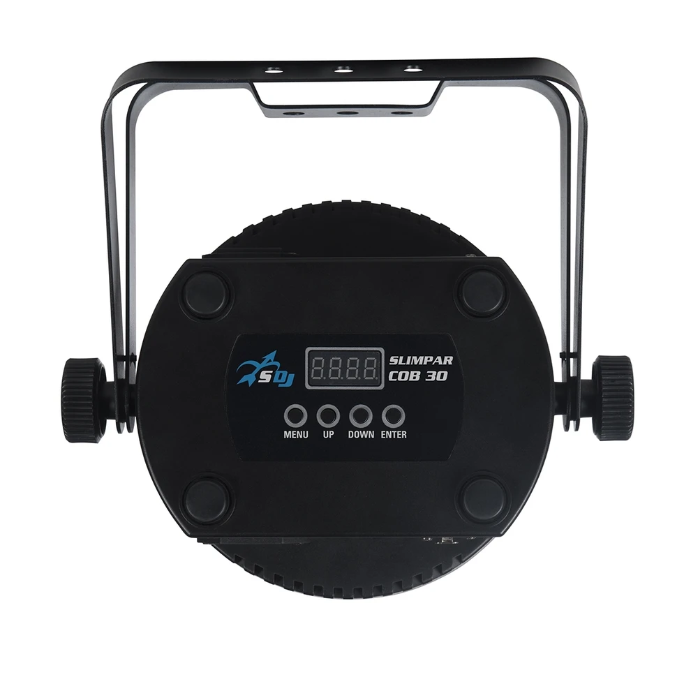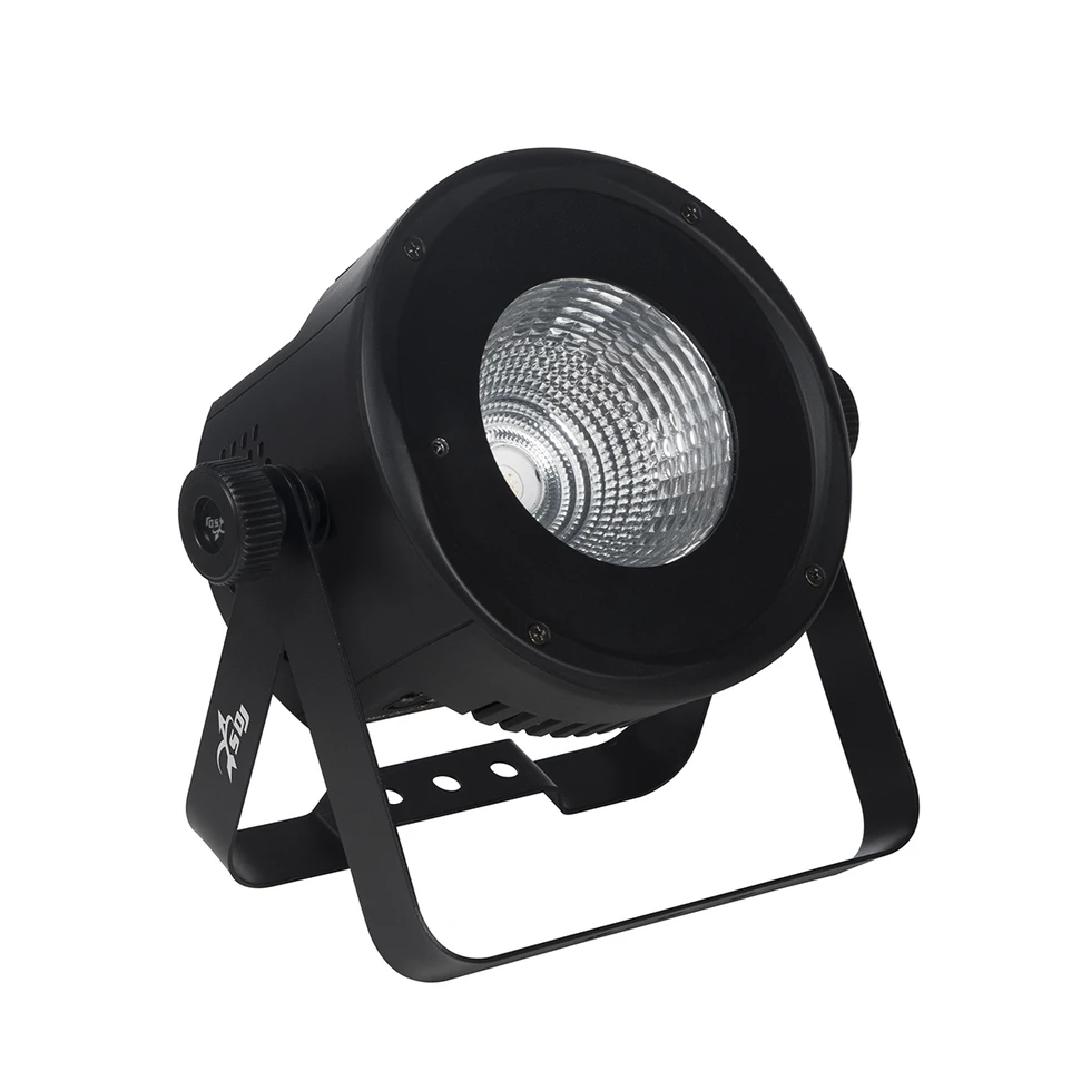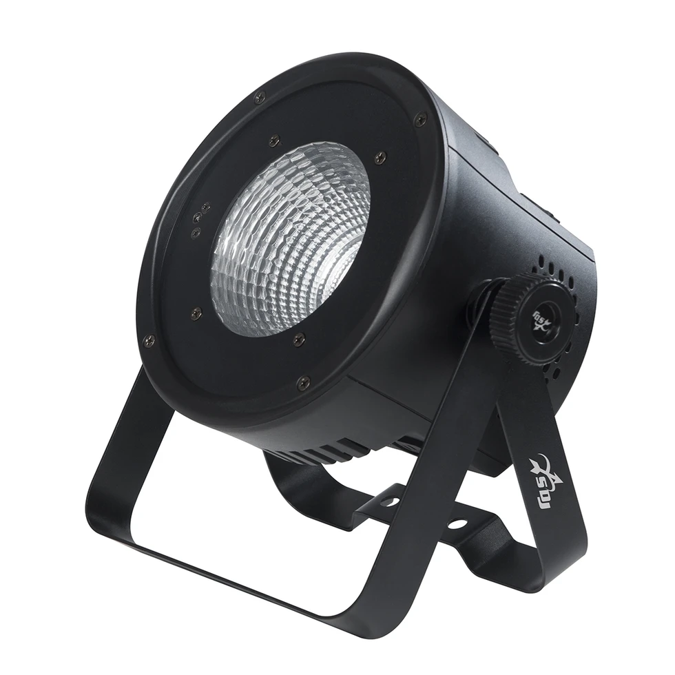 Заливающий прожектор 30 Вт RGBW COB LED, угол луча 50°, стробоскоп до 10 вспышек/с, 7 DMX-каналов, ИК-пульт.