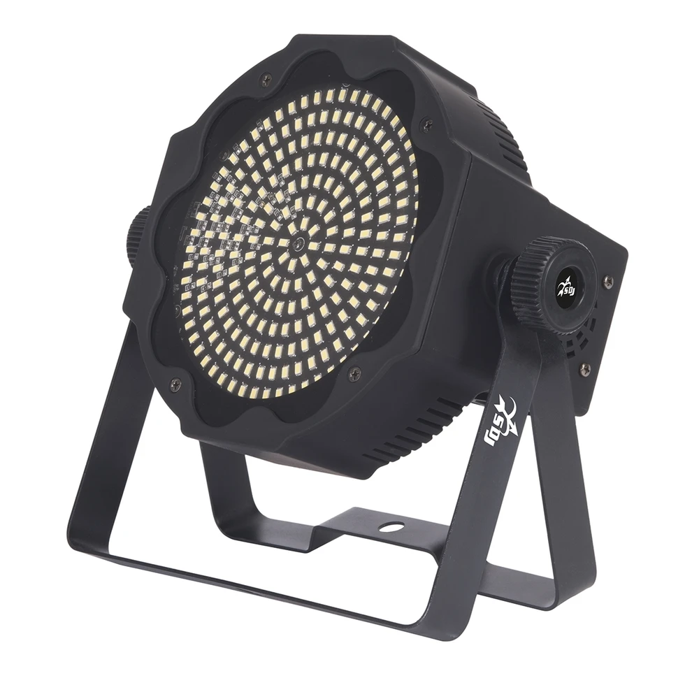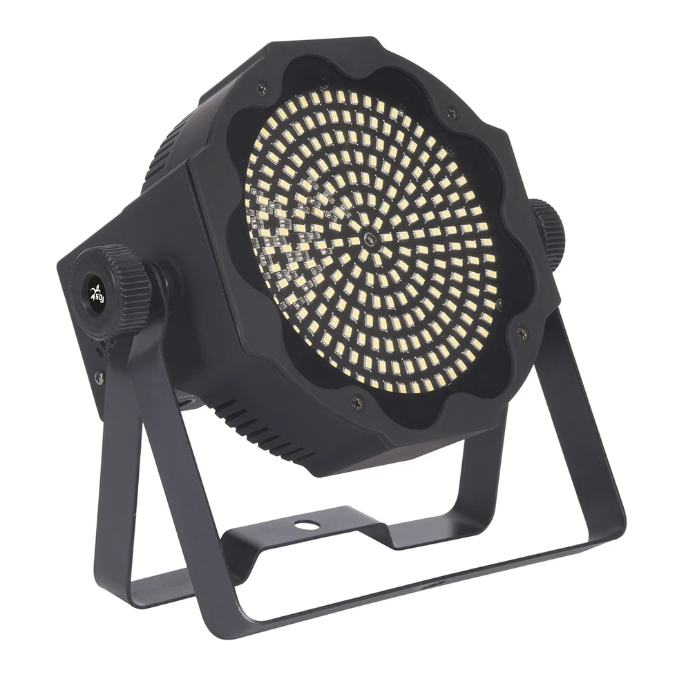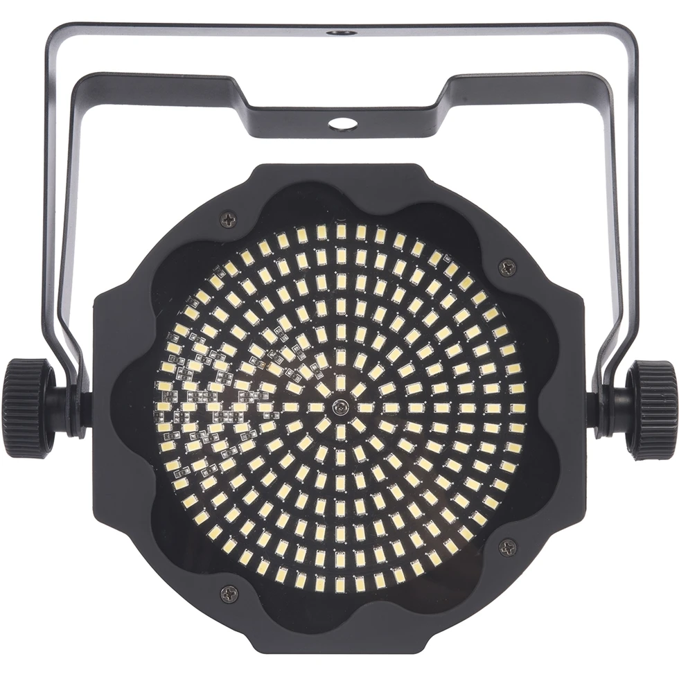 Заливающий прожектор с 224 x 0,5 Вт белыми 6500 K LED, угол луча 120°, 3/6/8/1 DMX-каналов, управляемый стробоскоп, ИК-пульт.