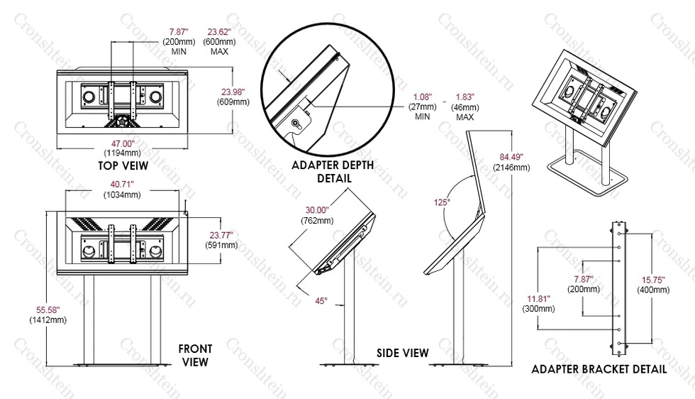 KL546-S - защитный стенд для сверхтонкой LCD-панели с диагональю экрана 46'', альбомная ориентация. Стандарт VESA до 600х400. Стенд с опорами и напольным основанием предназначен для защищенного монтажа LCD-панели в помещении. Опционально предусмотрена вентиляция для нормализации теплового режима работы панели. Наклон +45°, откидывающаяся прозрачная крышка (+125°). Габаритные размеры - 1194 х 1412 х 609 мм, масса 60 кг, максимальная допустимая нагрузка - 34 кг, базовый цвет серебристый, порошковая эмаль. Предусмотрена окраска в любой цвет.